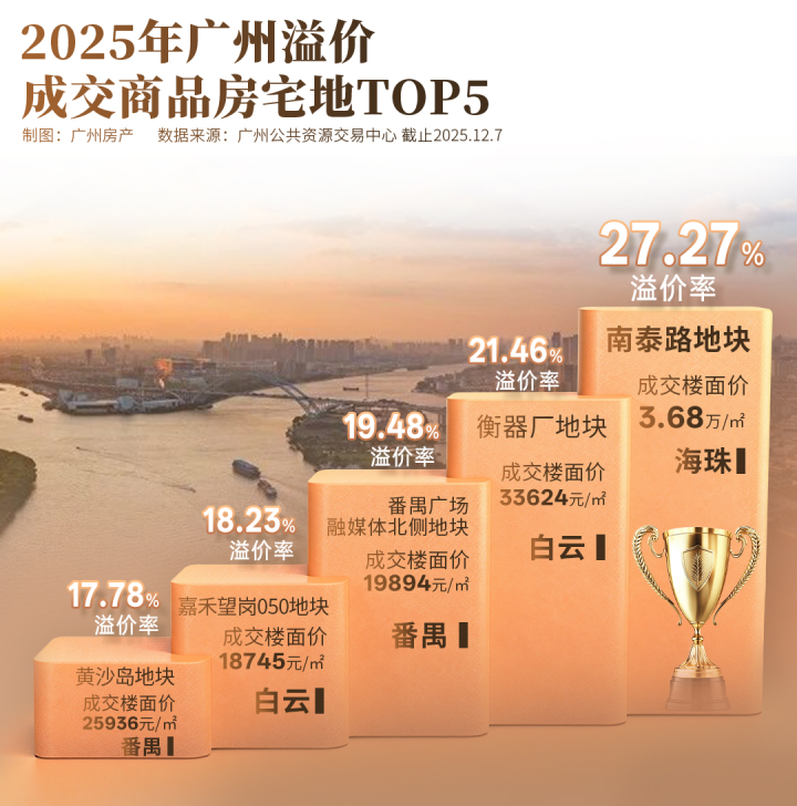两家房企拉锯3小时,火拼76轮,将海珠南泰路地块溢价率干到27.27%,创下今年商品房宅地溢价之最。